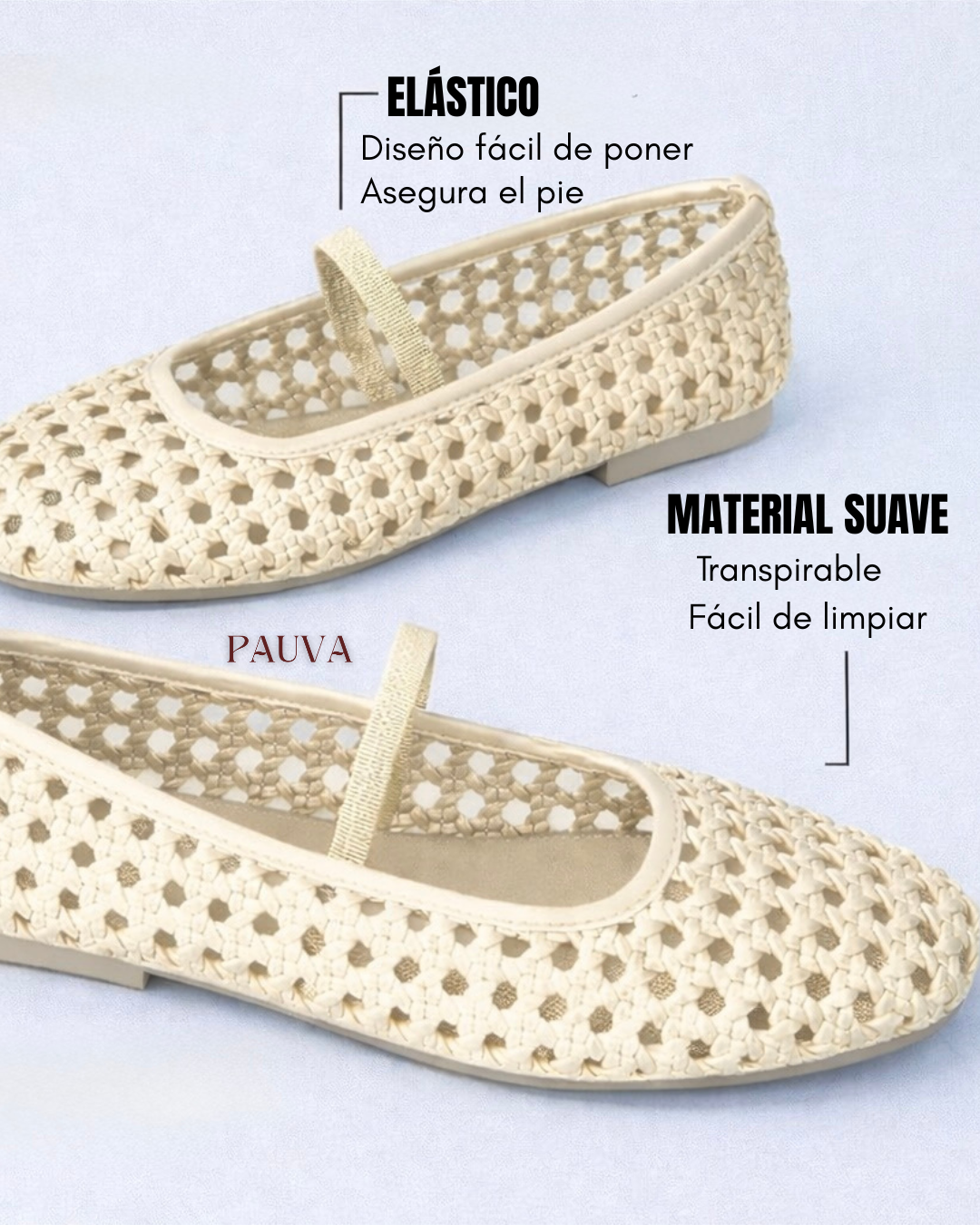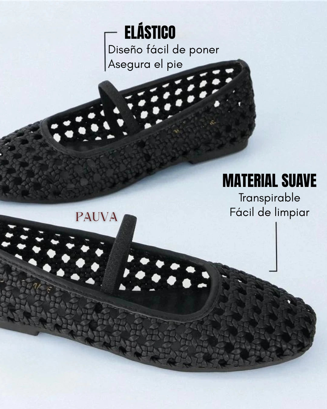 Diseñadas para acompañarte todo el día, las ballerinas PAUVA combinan diseño artesanal, ligereza y confort absoluto. Su tejido flexible y transpirable se adapta al pie, brindando una sensación suave y fresca en cada paso.